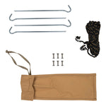 Attaching neatly to most vehicles, these self-standing retractable awnings fit onto the side of most roof racks and roof bars, and are conveniently stored for immediate use on arrival. Specifically designed for harsh wilderness conditions, the awnings feature anodized height adjustable telescopic legs, hook and loop ties to secure roof, thick reinforced aluminum extrusions all secured and free from the outside elements in a heavy duty nylon reinforced PVC bag. Constructed from tough PU coated 300gsm poly/cotton rip stop canvas, the awnings are fully waterproof and offer a UVP 50+ rating. ARB Awnings come in three great sizes, and fit up to 6.9ft (2.1m) high mounting points. (Length being the distance from the vehicle out). Comes with pegs and guy ropes for securing legs, stainless steel mounting nuts and bolts and comprehensive instructions.