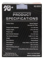 K&N Universal Air Filter (4in. Flange / 6in. Base OD / 4-5/8in. Top OD / 6in. Height)