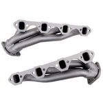 These BBK Performance shorty unequal Length exhaust Headers are designed and constructed with 1-5/8 in. CNC mandrel bent tubing that offers unrestricted exhaust flow for increased horsepower and torque over factory OEM manifolds. As with all BBK Performance exhaust headers they feature a 3/8 in. laser cut flange for additional strength and a guaranteed leak free fit. All headers are robotically and precision hand welded and then pressure tested to ensure years of reliability and performance in the real world. All BBK exhaust headers are available in a titanium ceramic or polished silver ceramic coated finish and include new exhaust header gaskets, header bolts and hardware to complete the installation.