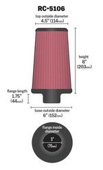 K&N Universal Chrome Round Tapered Air Filter 3in FlangeID / 6in Base OD / 4.5in Top OD / 8in Height